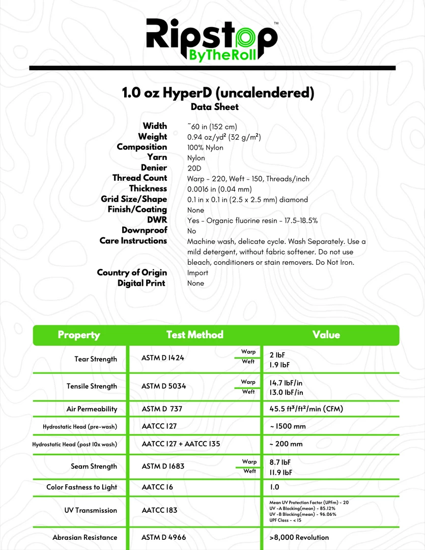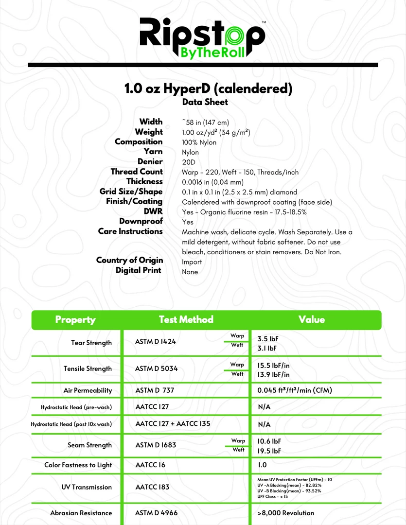 At 1.0 oz, this fabric gives you a lighter alternative to more common, 1.1 oz weights while retaining maximum strength + durability.