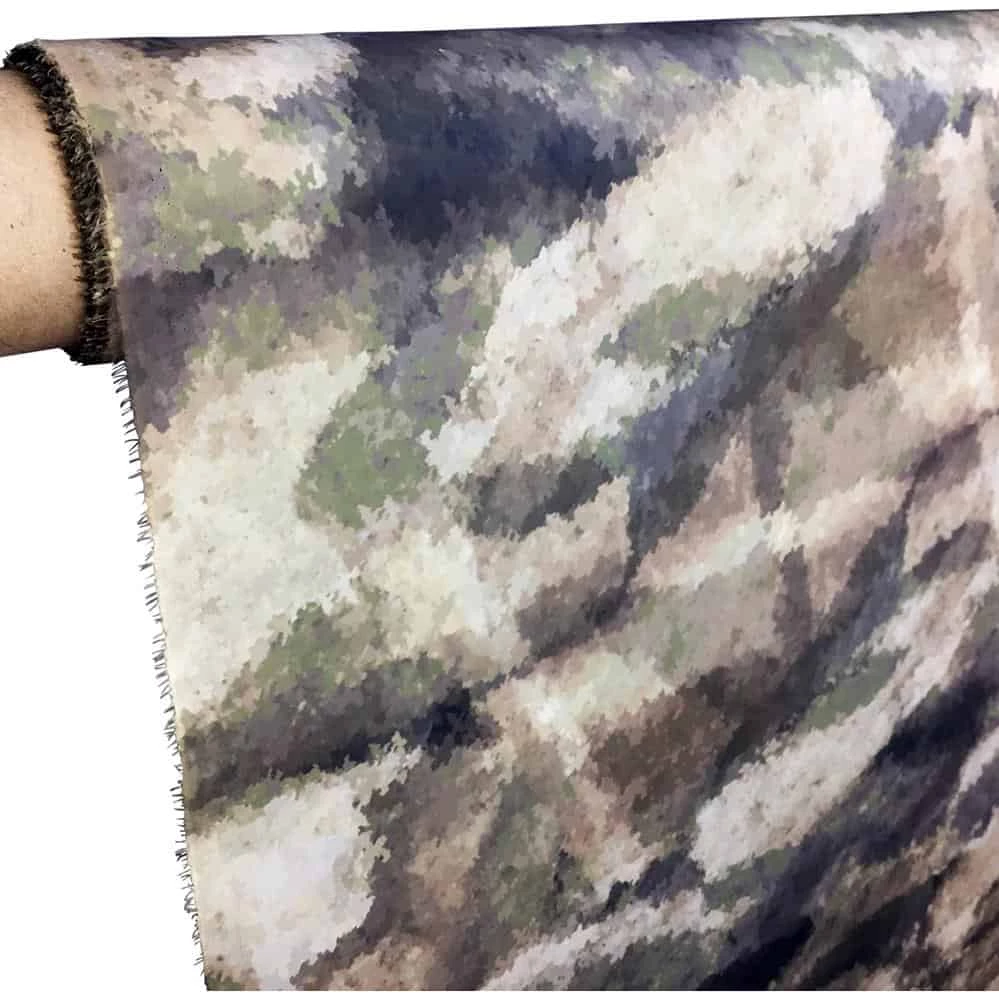 Breathable, uncalendered 1.6 oz polyester ripstop with a DWR (Durable Water Repellent) finish. Natural UV resistance (i.e. resists color fading), low bias stretch under load, and quick drying qualities of polyester. Now in A-TACS® camo.